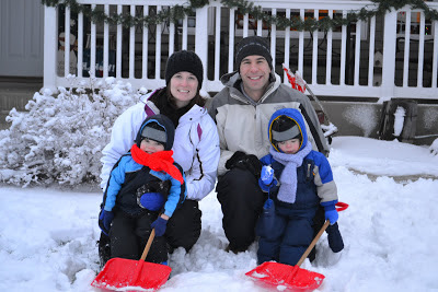 But on December 8th, we finally started getting snow. And we got to play outside. Yippee! My dream come true. It was Eli and Will's first time playing in the snow. (They did get out in the sleds once last winter, but that was only for about 10 minutes. We hardly had any snow last year either.)